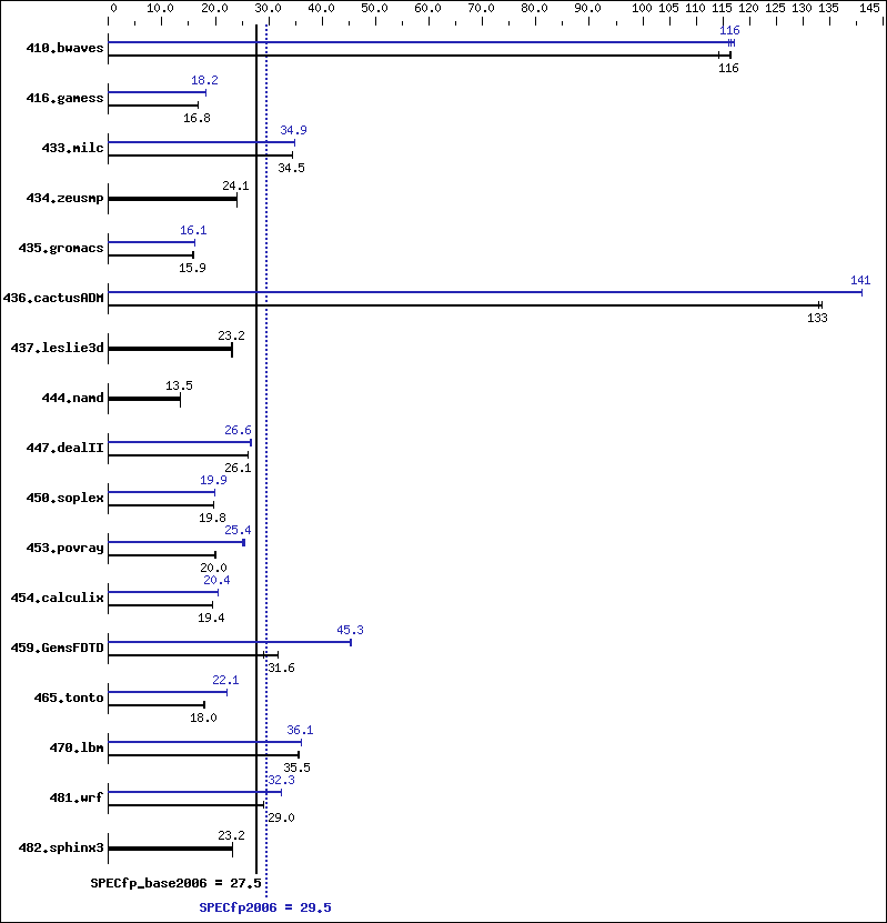 | 459.GemsFDTD: | -xSSE4.2(pass 2) -prof-gen(pass 1) -ipo(pass 2) -O3(pass 2) -no-prec-div(pass 2) -static(pass 2) -prof-use(pass 2) -unroll2 -Ob0 -opt-prefetch -parallel |