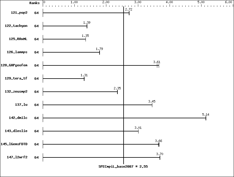 | 132.zeusmp2 | 64 | 903 | 2.35 | 900 | 2.35 | 900 | 2.36 | |||||||