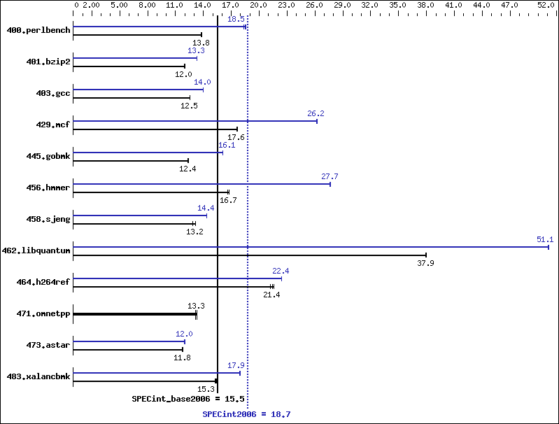 | 400.perlbench | 710 | 13.8 | 705 | 13.9 | 706 | 13.8 | 532 | 18.4 | 526 | 18.6 | 529 | 18.5 |