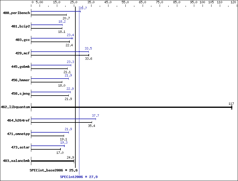 | 445.gobmk: | -QxSSE4.1(pass 2) -Qprof_gen(pass 1) -Qprof_use(pass 2) -Qipo -O2 -Qprec-div- -Qansi-alias /F512000000 |