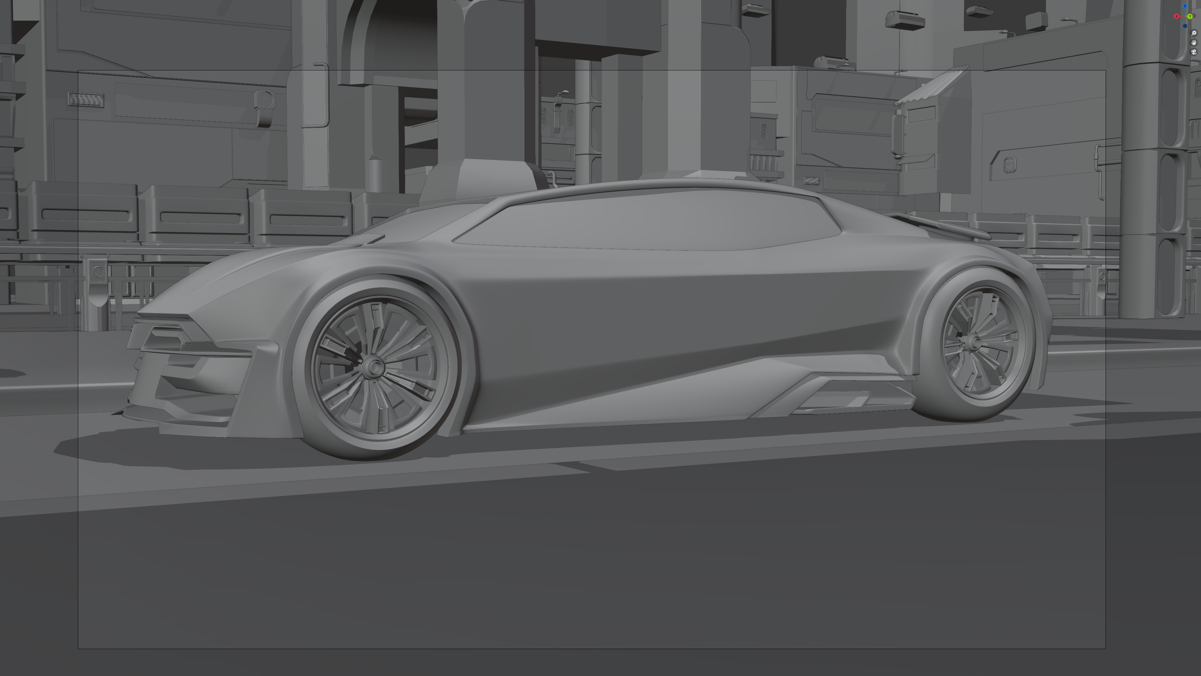 Shaded metroverse scene with a wireframe outline