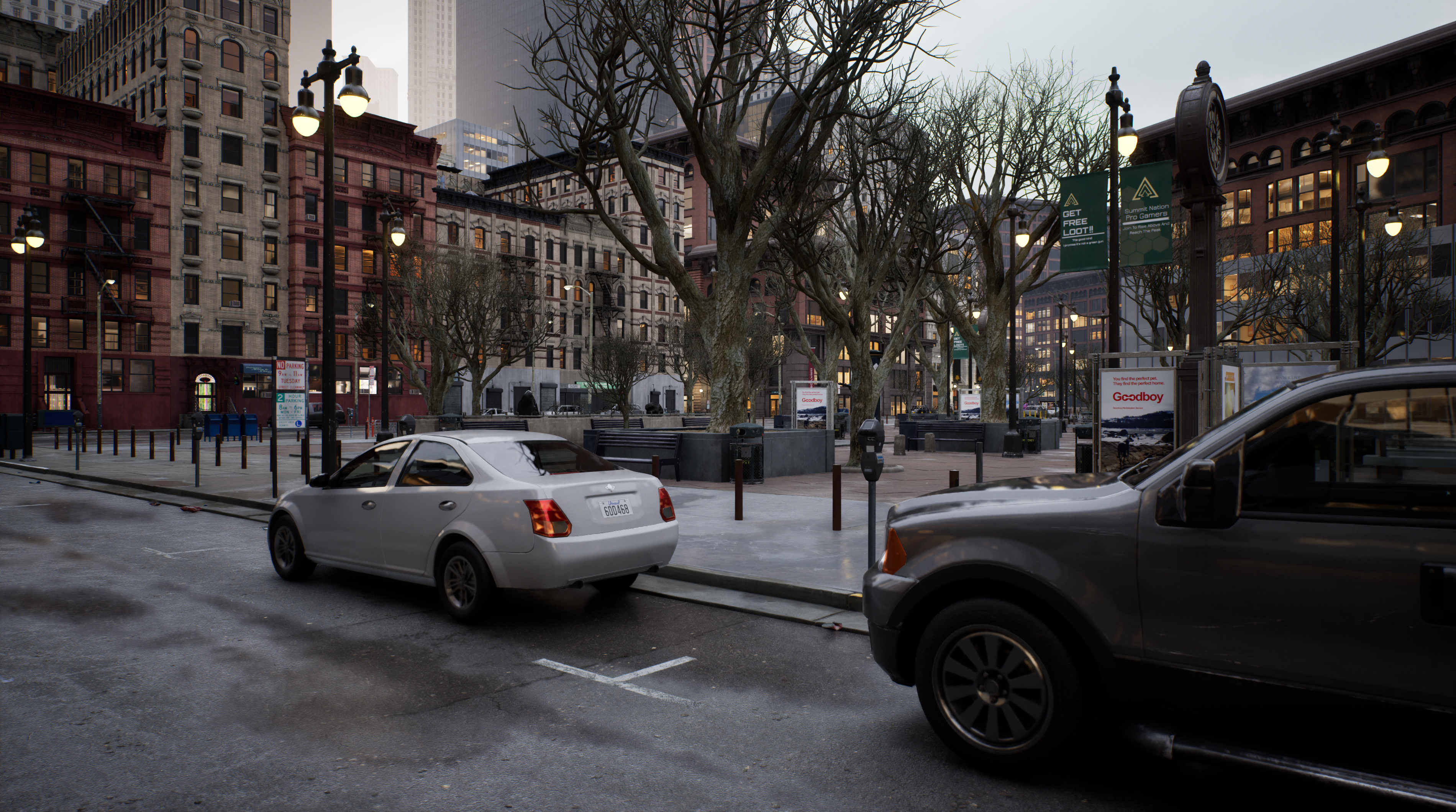 Lit view City Sample with Hit Lighting for reflections ray lighting mode