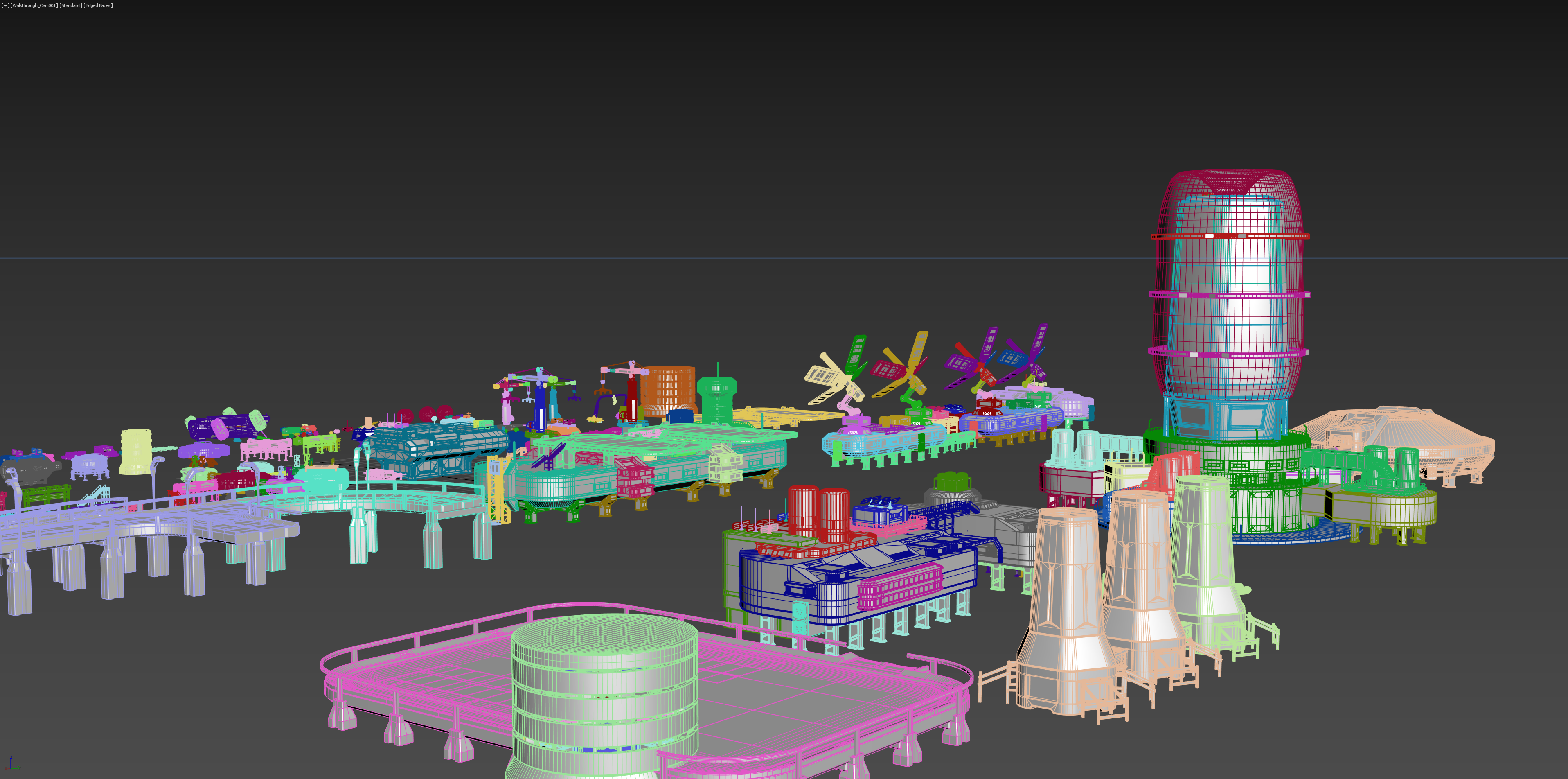 X-ray shaded metroverse scene with random color per object