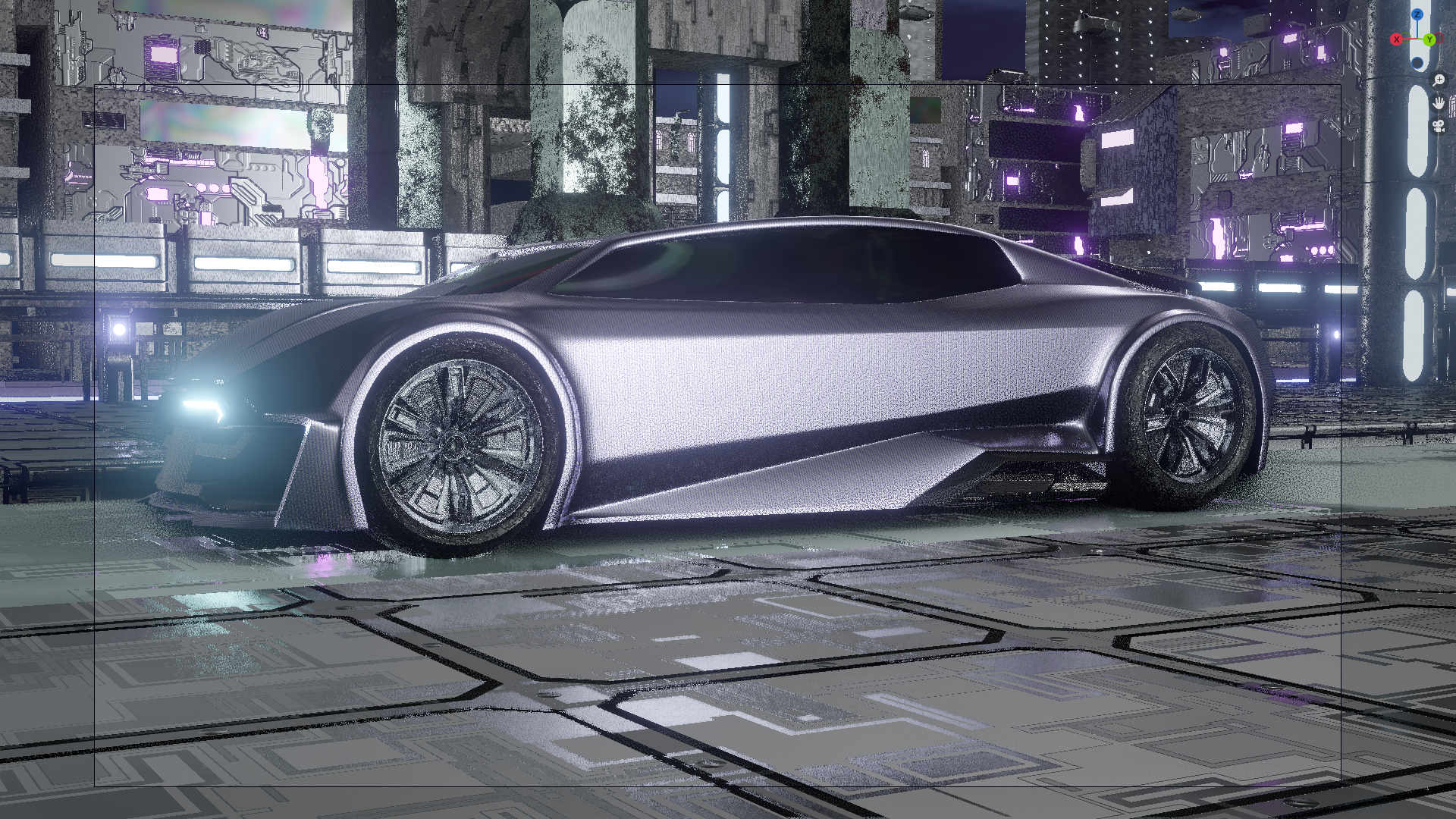 Shaded metroverse scene with a wireframe outline