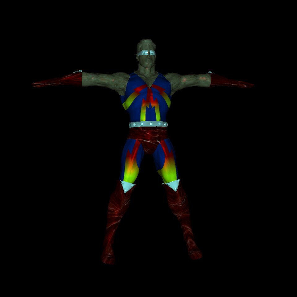 10.45%  Material shading of polygonal animation model with lowest interactive image fidelity and perspective projection.