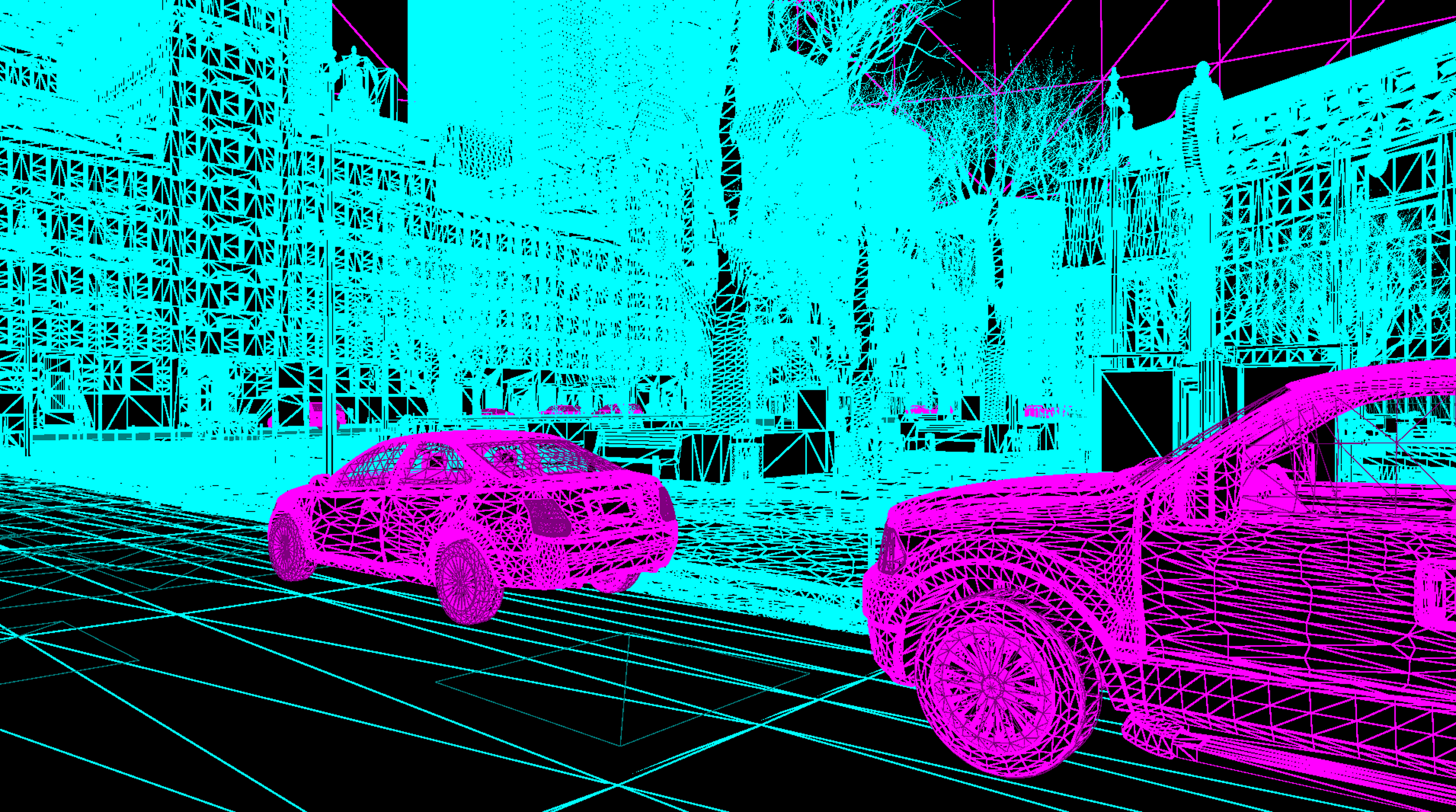 X-ray shaded metroverse scene with random color per object