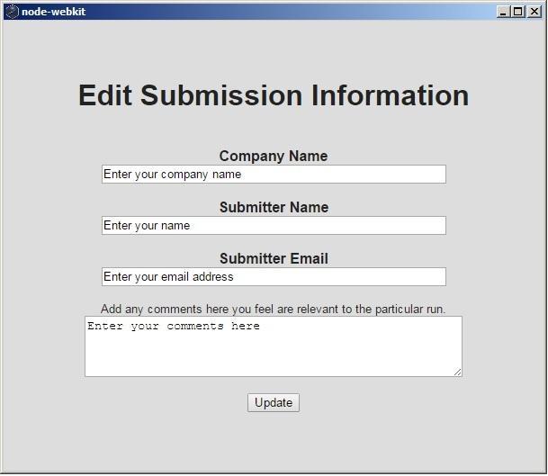 - (optional) If submitting results to SPEC, click on the “Submission Info” link in the bottom right hand corner of the benchmark interface to enter all information in this form BEFORE running the benchmark.