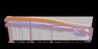 Similar to medical imaging such as MRI or CT, geophysical surveys generate image slices through the subsurface that are built into a 3D grid. Volume rendering provides a 2D projection of this 3D volumetric grid for further analysis and interpretation. In addition to the volume rendering, the test includes both inline and crossline planes (slices in the X and Y planes). Some subtests contain horizons, which are geological strata boundaries of interest, generated by exploration geophysicists, and are rendered using textured triangle strips.