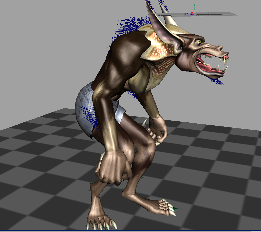 Each of the four models - a werewolf, human hand, insect and squid - are rendered and displayed in the five different modes used in Maya 5: wireframe, Gouraud-shaded, texture, texture highlighted with a wireframe mesh, and texture selected (texture with wireframe mesh and control points). The benchmark is unique in its ability to test performance for large texture sizes and multiple viewports.