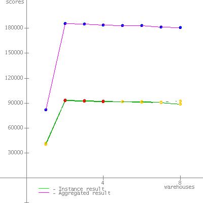 - Each JVM instance was affinitized to two logical processors.